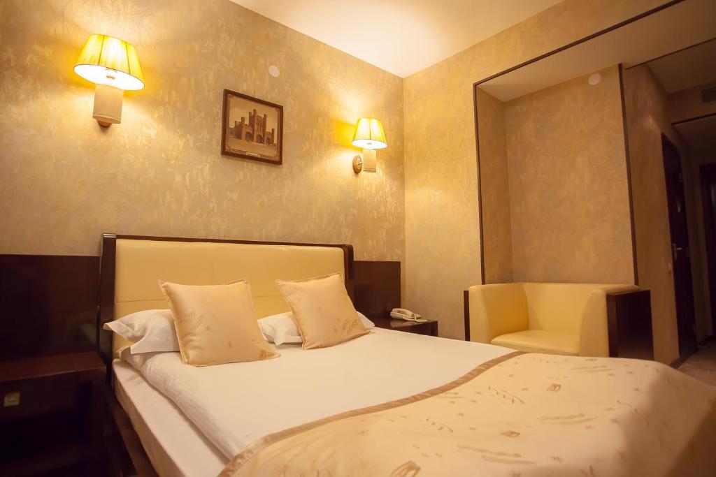 В «Номерах бизнес-класса» 24 кв.м. Просторный и элегантно оформленный номер с телевизором и собственной ванной комнатой с бесплатными туалетными принадлежностями и большим зеркалом.
